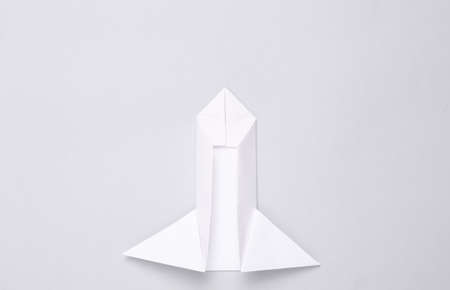 Origami paper rocket on gray background