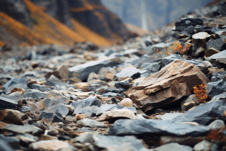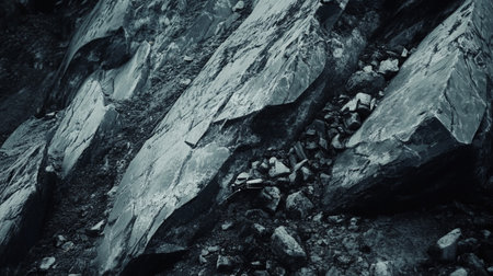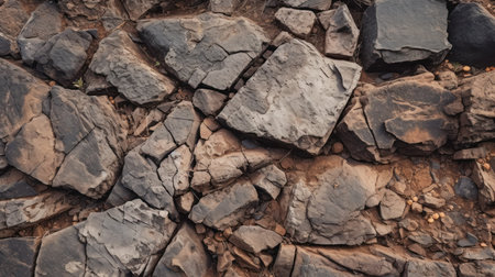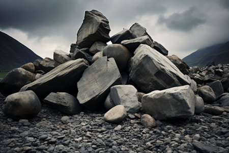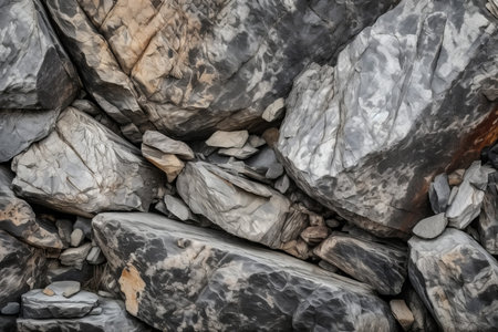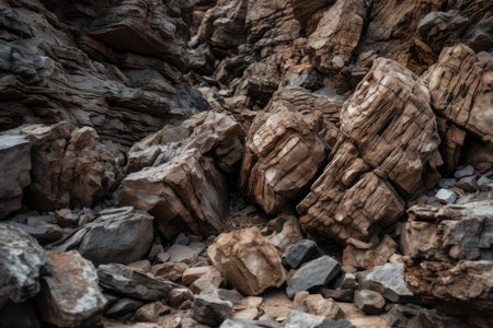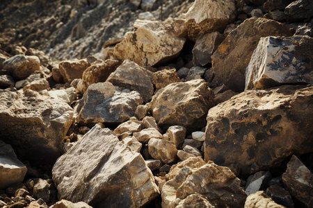 A close up of a pile of rocks. The rocks are rough and jagged, giving the image a rugged and natural feel. Scene is one of strength and resilience