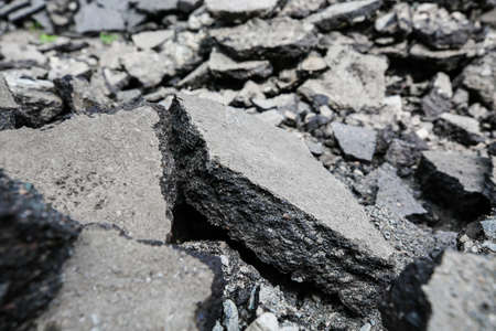 Repaving work. Asphalt pieces, pieces of broken asphalt, repairs, construction work