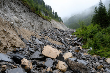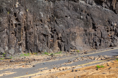 Natural Disaster Landslides on a Road with Falling Rocks. High quality photo