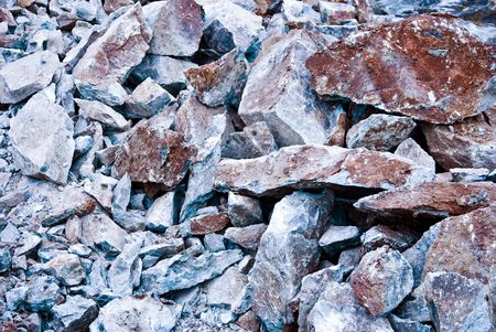 A pile of gray rocks with various sizes and shapes, showing cracks and texture. The rocks are tightly packed together, creating a textured background.