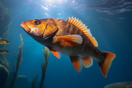 Close-up of a majestic sea fish in crystal-clear water, highlighting its intricate scales and vivid colors