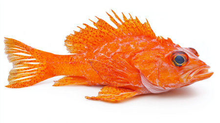 Orange Roughy presents a vivid display of its bright orange hue and distinctive spiny fins highlighting its unique physical features and natural beauty.