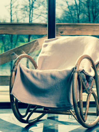 Rocking chair in the open air. Wicker chairs for relaxing.
