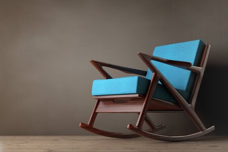 Rocking Chair Upholstered with Blue Cloth on a wooden floor. 3d Rendering