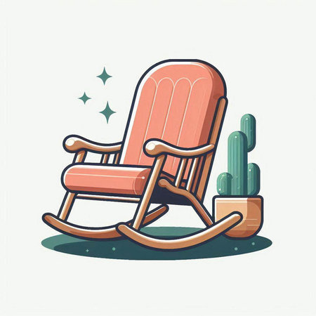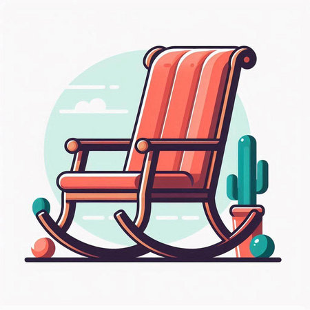 Cartoon rocking chair with cactus. Vector illustration in flat style