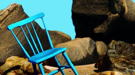 retro blue wooden chair on the beach