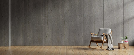 Living room interior room concrete wall mockup has an armchair on empty dark wall background.3d rendering