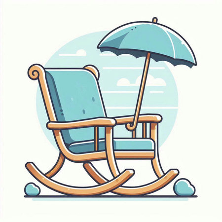 Vector illustration of rocking chair with umbrella on the background of the sea.