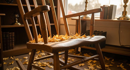 Wooden rocking chair with autumn leaves in the interior of the room