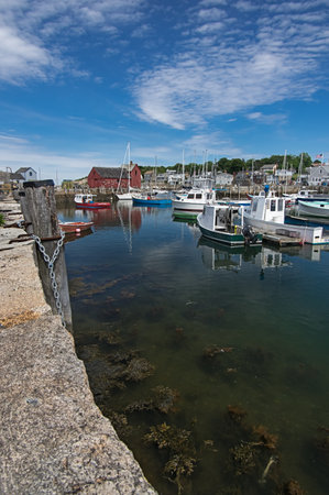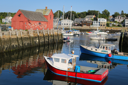 Rockport, Massachusetts -August 08, 2014: A view of Rockport Harbour and boats in Summer day , Rockport, Massachusetts, New England.