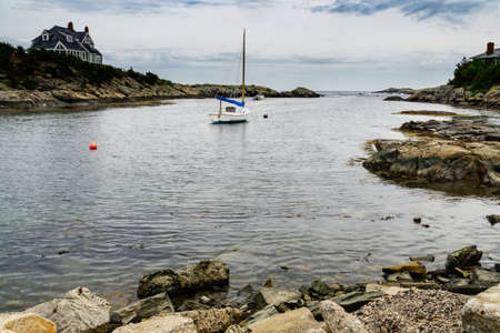 Newport, RI / United States - Sept. 17, 2020: a view of a sailboat near Cherry Neck in the Ocean Drive Historic District.