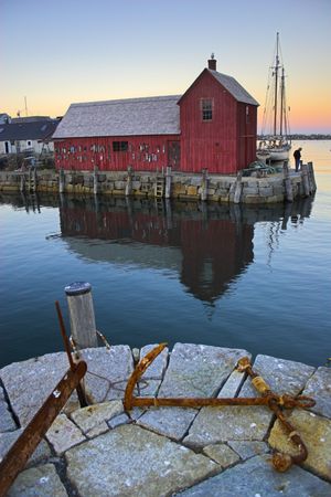 Motif Number 1 is a fishing shack built in 1840 in Rockport, Massachusetts, USA. This building is the the most famous symbol of New England maritime life.