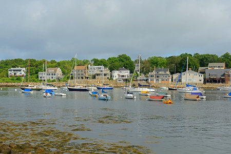 Town of Rockport on Cape Ann harbor and colorful cottages view, famous summer tourist destination in Massachusetts, United states