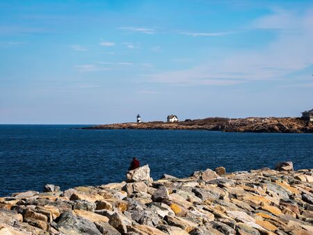 Scituate Harbor overlooks a breakwater in Massachusetts - Oct, 2022. High quality photo