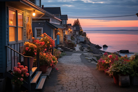 simplicity and charm of coastal living with images showing small fishing boats, beachside cottages, and seaside communities. relaxed lifestyle by the sea for travel and real estate publications.