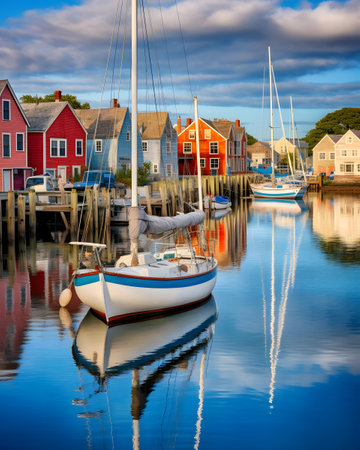 Photo capturing the serene beauty of a picturesque seaside village with vibrant colorful houses and moored boats