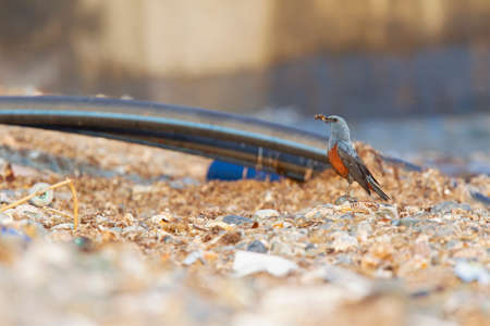 Close up of common rock thrush (Monticola saxatilis)