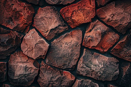 Wall of textured stones in dark colors close up