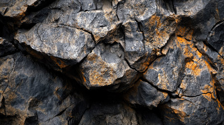 Close-up view of a dark, textured rock surface with jagged and rough texture