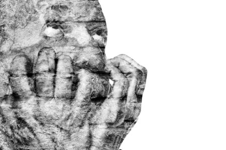 Abstract image of an emotionally unbalanced elderly man with his hands near the face
