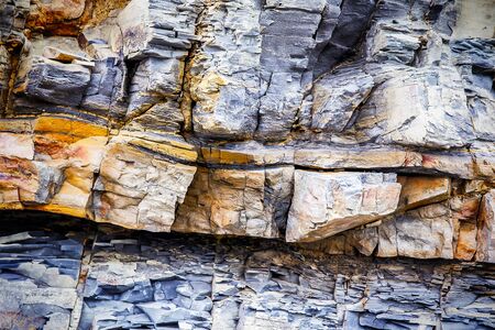 Sea cracked granite textured rock concept photo. Mediterranean sea rough surfaces. Close up stone background for design. Texture in nature for wallpaper. High quality picture for wallpaper