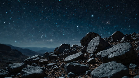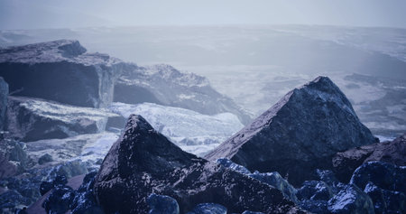 Beautiful cinematic mountain landscape with black marble and granite. High quality illustration