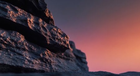 AI Generated. Sunset glow on dark rock wall texture background