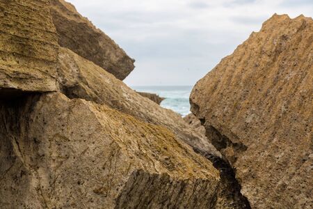 Brutal masculine grunge background of stone. Rock mountains near the sea