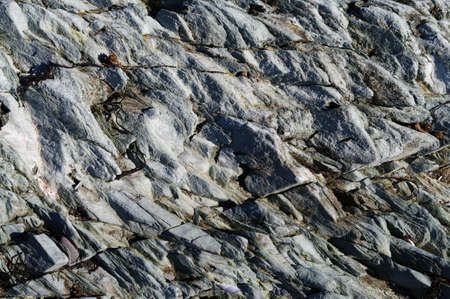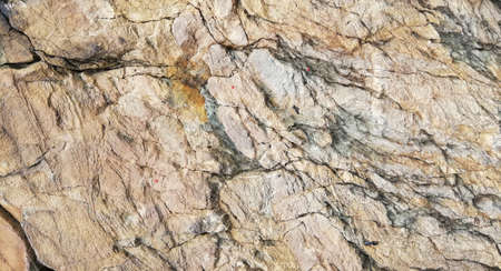 Sea cracked granite textured rock concept photo. Mediterranean sea rough surfaces. Close up stone background for design. Texture in nature for wallpaper. High quality picture for wallpaper