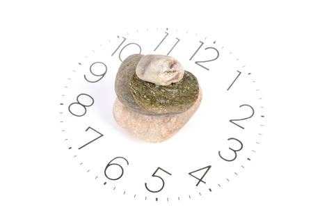 Time on clock in stone. Desertification Drought concept , underdevelopment Trapped Stone Age. Middle Ages