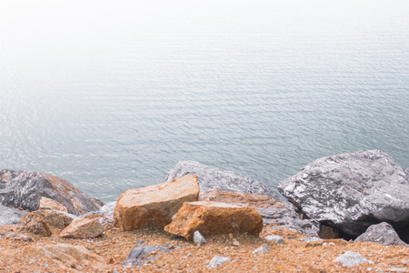 Selective focus od black stone texture for put product to show with beach in background.