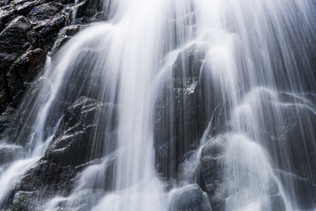Waterfall in the forest, close-up. Nature background.