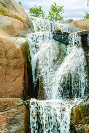 Cascade waterfall in northern finnish rocks, Sapokka landscape park, Kotka, Finland.