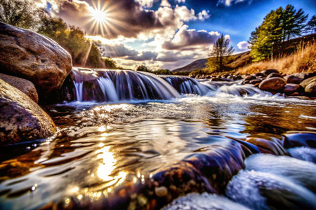 Tranquil scene of flowing water in autumn generated by artificial intelligence