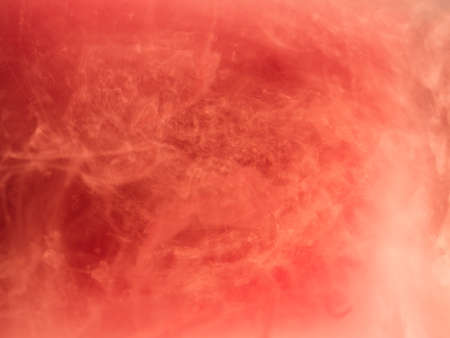 Abstract colored background with soft focus. Red smoke, ink in water, the patterns of the universe. Abstract movement, frozen red flow of paint. Horizontal photo, blurred backdrop.