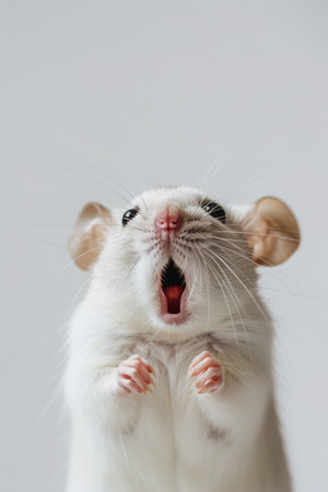 portrait of a domestic rat with open mouth on a white background