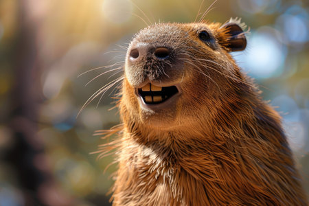 Close-Up Capybara with Visible Teeth and Whiskers.