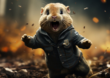a hamster wearing a jacket.