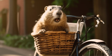 beaver have fun bicycle ride on sunshine day in summer on town street