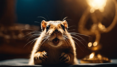 A mesmerizing close-up portrait of a small creature illuminated by dramatic lighting. This image captures exquisite details of fur and eyes, creating an enchanting and mysterious atmosphere.