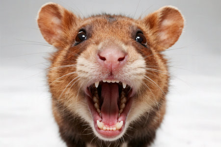 This striking close-up captures an angry rat, exposing its fierce expression and intricate details.