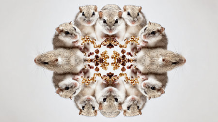 Hamster group in circle on white background. 3D rendering.