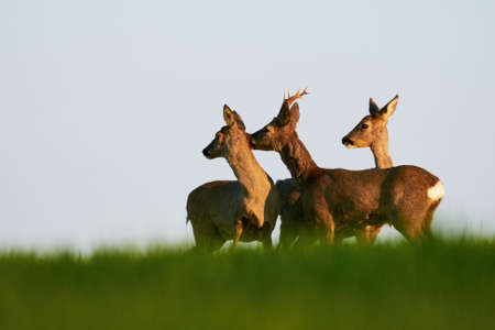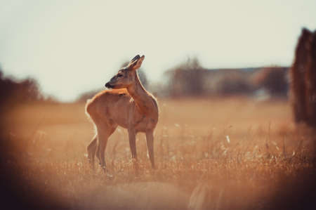Roe deer in the meadow at sunset, Capreolus capreolus