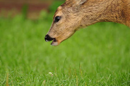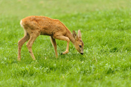 Roe deer is standing in green grass