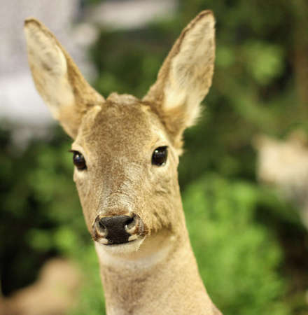 young deer portrait closeup on the background of wild nature
