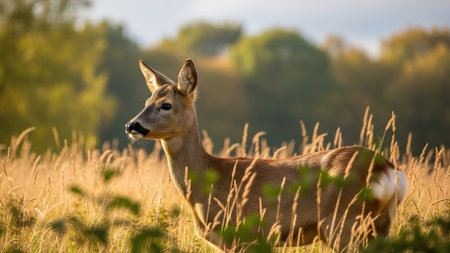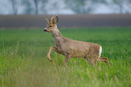 roe deer at field in the wild nature