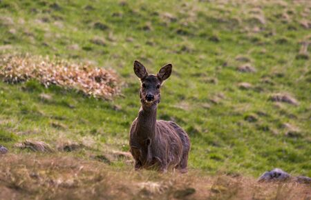 One female roe deer in meadow.