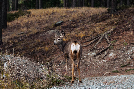 A mule deer walking in the wilderness