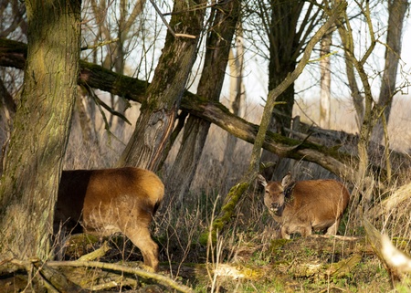 Roe deer in forest, Capreolus capreolus. Wild roe deer in nature.